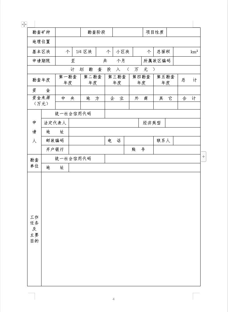 非油氣探礦權新立申請登記書模板下載