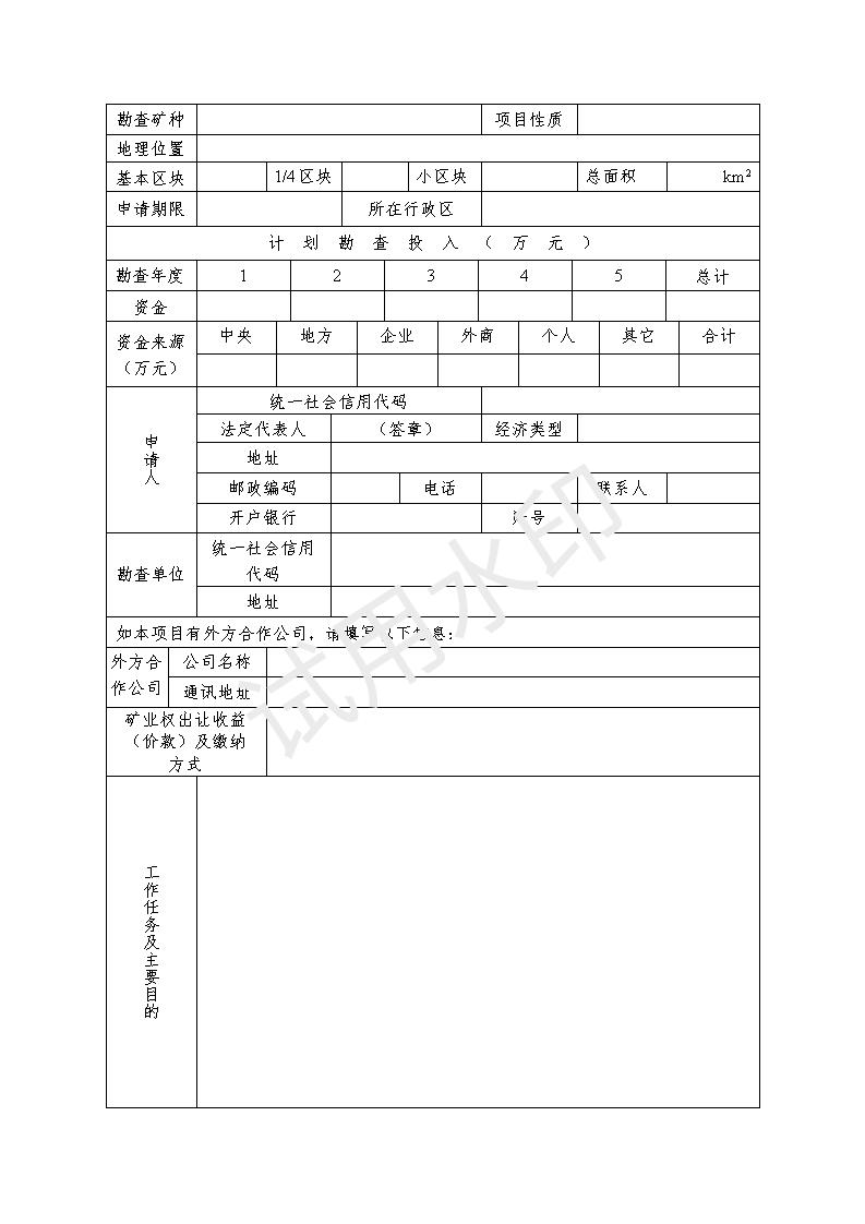 油氣探礦權(quán)新立申請(qǐng)登記書(shū)模板下載