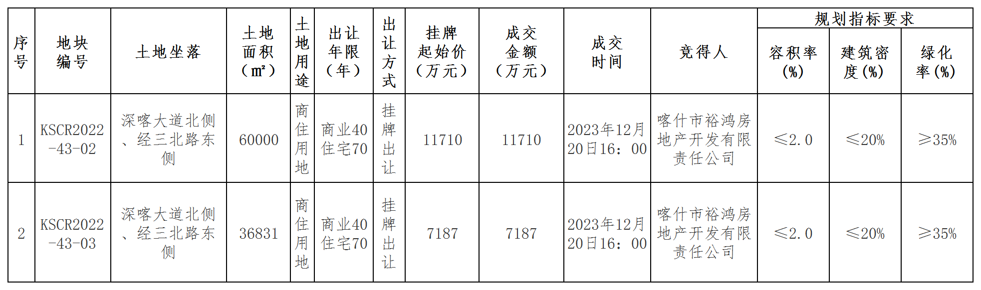 喀什市國(guó)有建設(shè)用地使用權(quán)成交結(jié)果公示(喀市自然成交公示[2023]05)