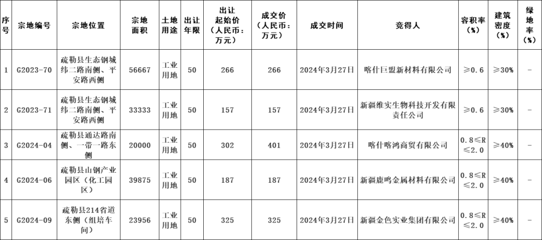 疏勒縣自然資源局國(guó)有建設(shè)用地使用權(quán)成交結(jié)果公示