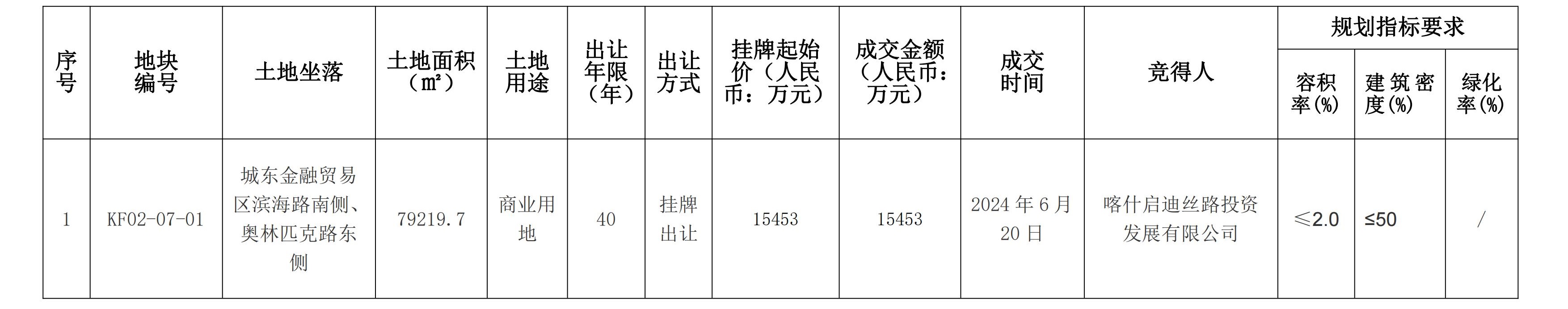 (喀經(jīng)開規(guī)土成交公示[2024]04號(hào))