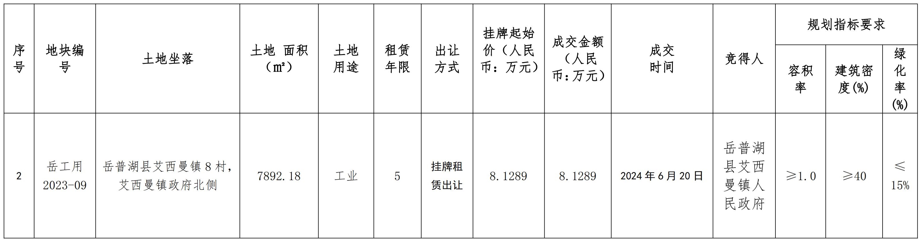 岳普湖縣國有建設(shè)用地使用權(quán)掛牌出讓成交結(jié)果公示