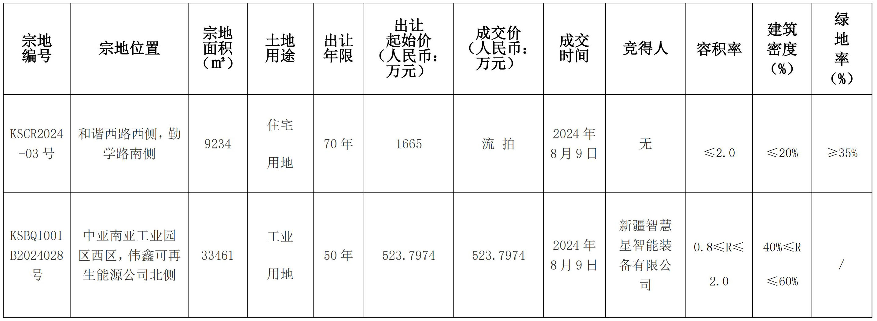 喀什市自然資源局國有建設(shè)用地使用權(quán)成交結(jié)果公示
