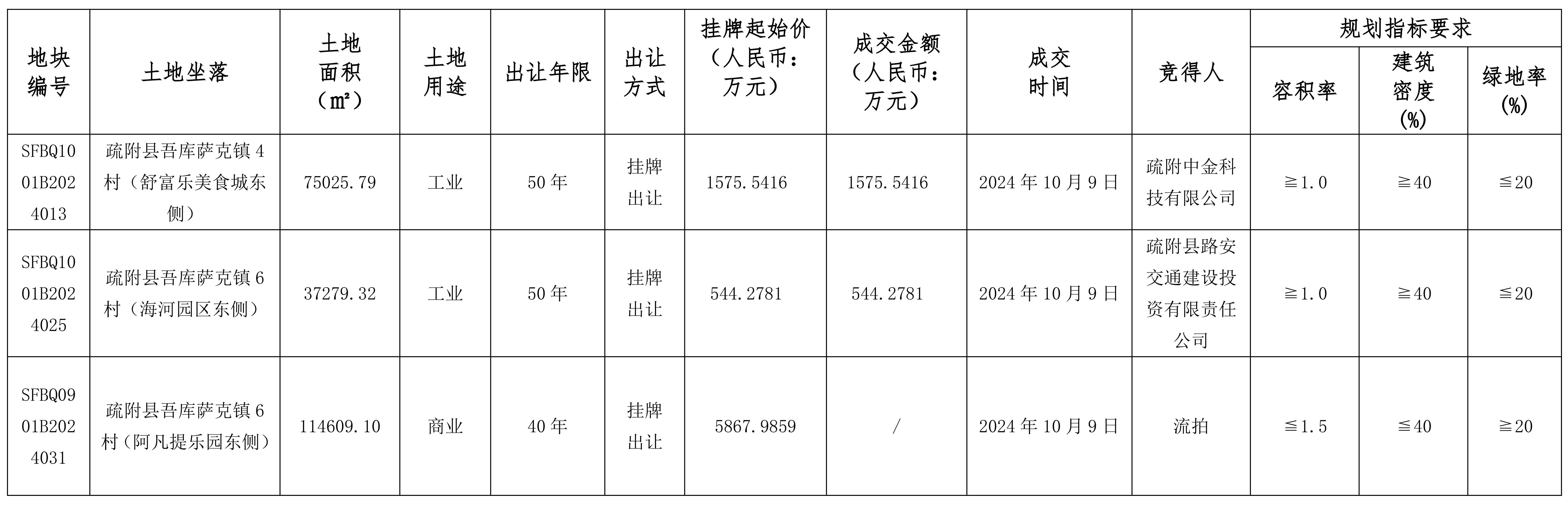 疏附縣自然資源局國有建設(shè)用地使用權(quán)成交結(jié)果公示