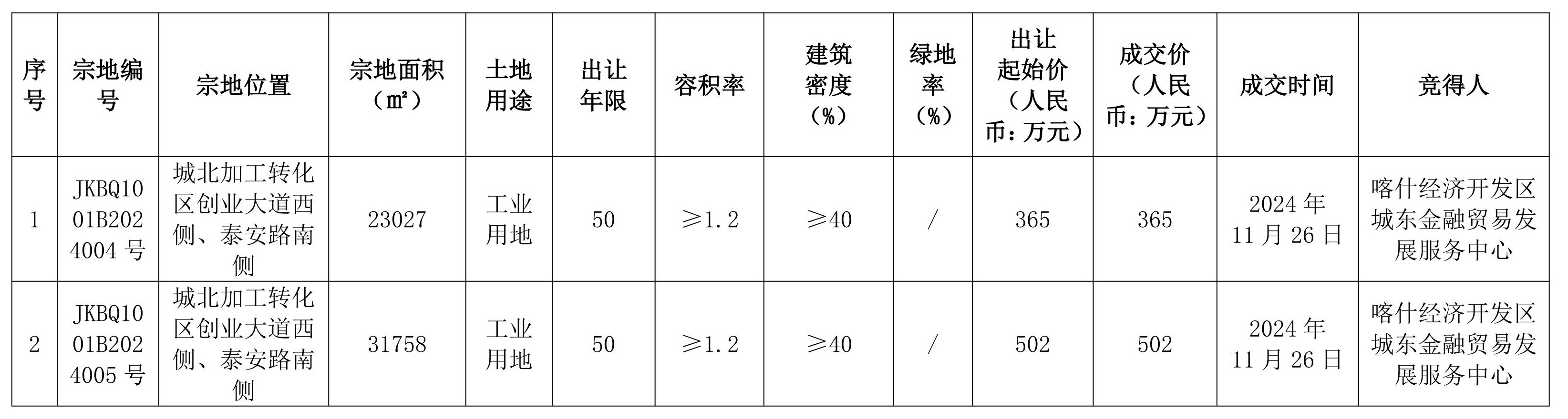 喀什地區(qū)自然資源局喀什經(jīng)濟(jì)開發(fā)區(qū)分局國有建設(shè)用地使用權(quán)成交結(jié)果公示