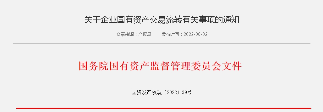 《企業(yè)國有資產(chǎn)交易監(jiān)督管理辦法》(國資委 財政部令第32號)等國有資產(chǎn)交易流轉(zhuǎn)制度印發(fā)以來,在推動國有資產(chǎn)規(guī)范流轉(zhuǎn)、防止國有資產(chǎn)流失方面發(fā)揮了重要作用。為推動國有經(jīng)濟布局優(yōu)化和結(jié)構(gòu)調(diào)整,助力企業(yè)實現(xiàn)高質(zhì)量發(fā)展,加強國有資產(chǎn)交易流轉(zhuǎn)管理,現(xiàn)將有關(guān)事項通知如下: