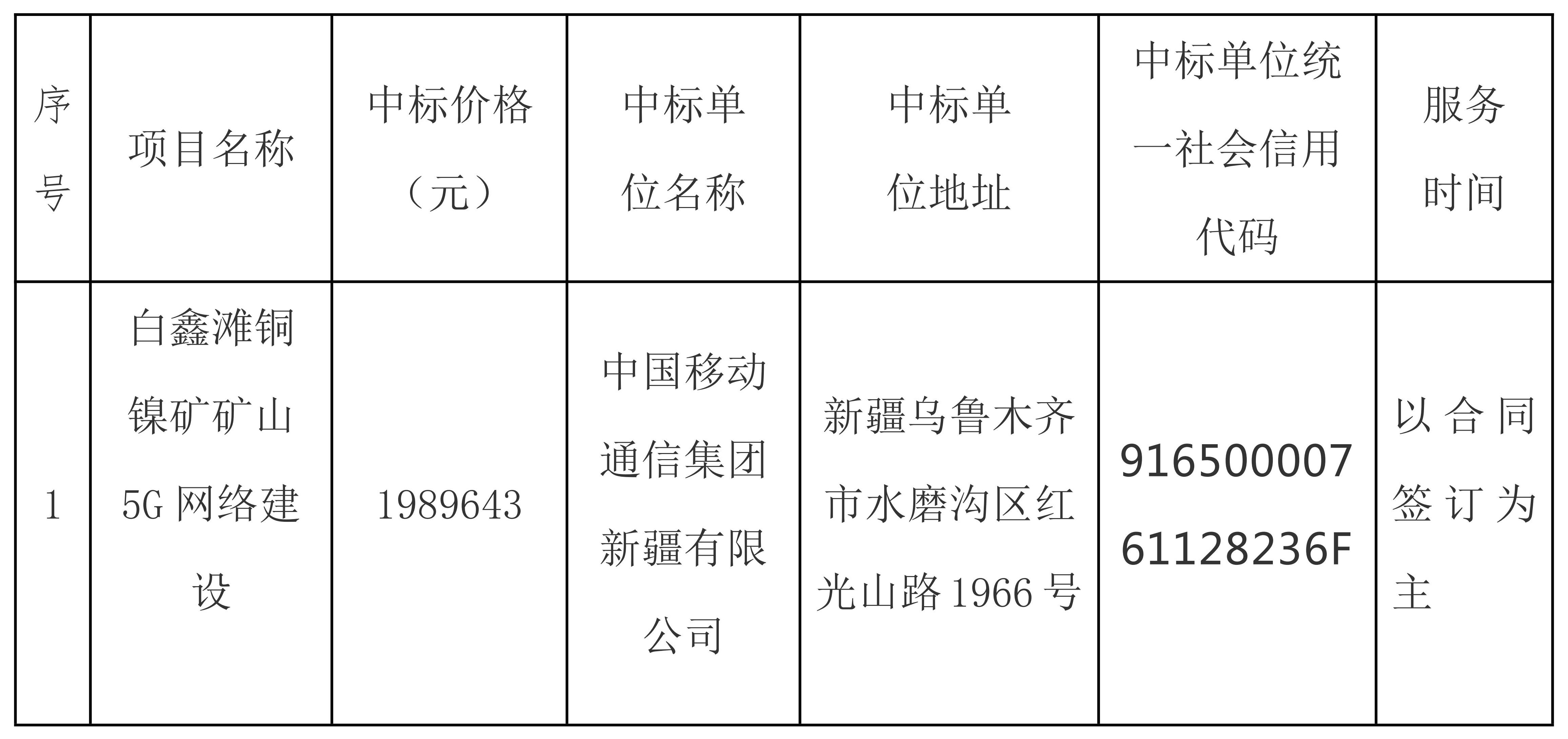 二、項目名稱:白鑫灘銅鎳礦礦山5G網絡建設