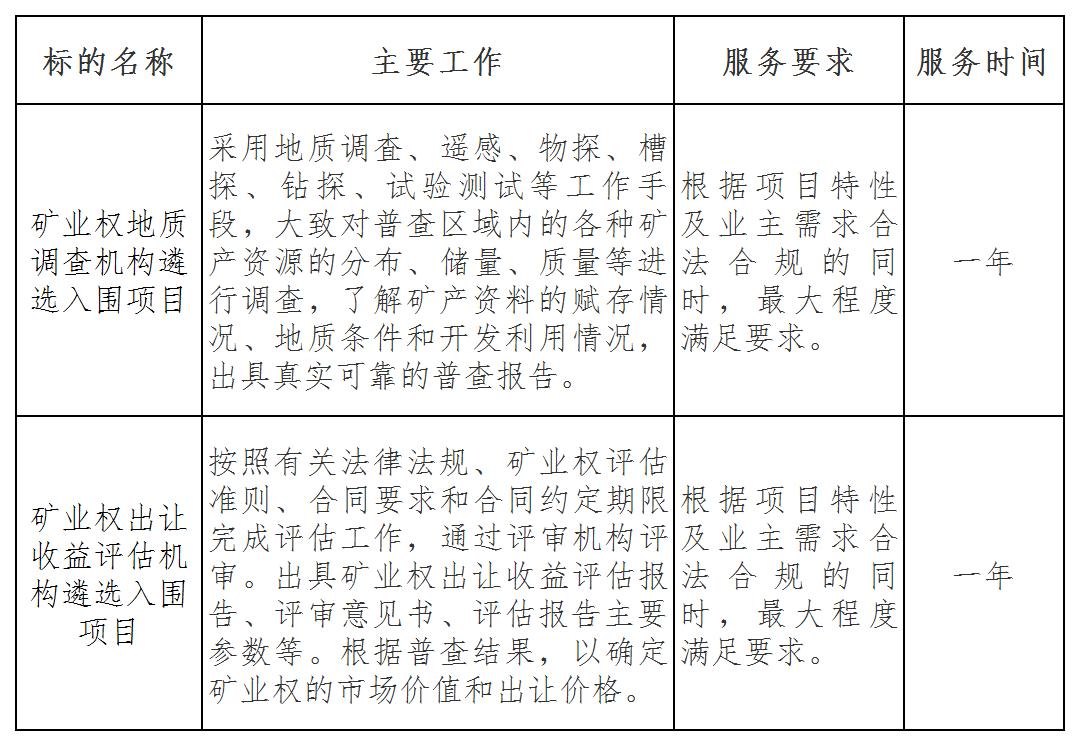 二、項(xiàng)目名稱:礦業(yè)權(quán)地質(zhì)調(diào)查機(jī)構(gòu)和出讓收益評估機(jī)構(gòu)遴選入圍項(xiàng)目