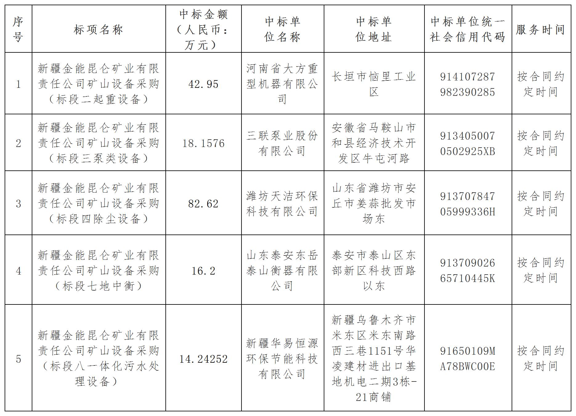 二、項(xiàng)目名稱:新疆金能昆侖礦業(yè)有限責(zé)任公司礦山設(shè)備采購(gòu)項(xiàng)目