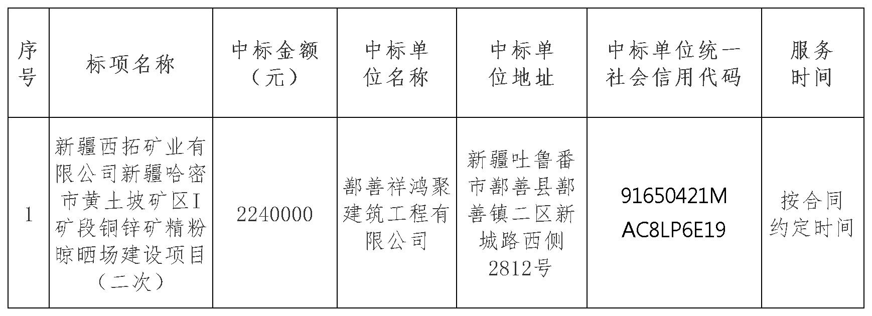 二、項目名稱:新疆西拓礦業(yè)有限公司新疆哈密市黃土坡礦區(qū)I礦段銅鋅礦精粉晾曬場建設項目(二次)